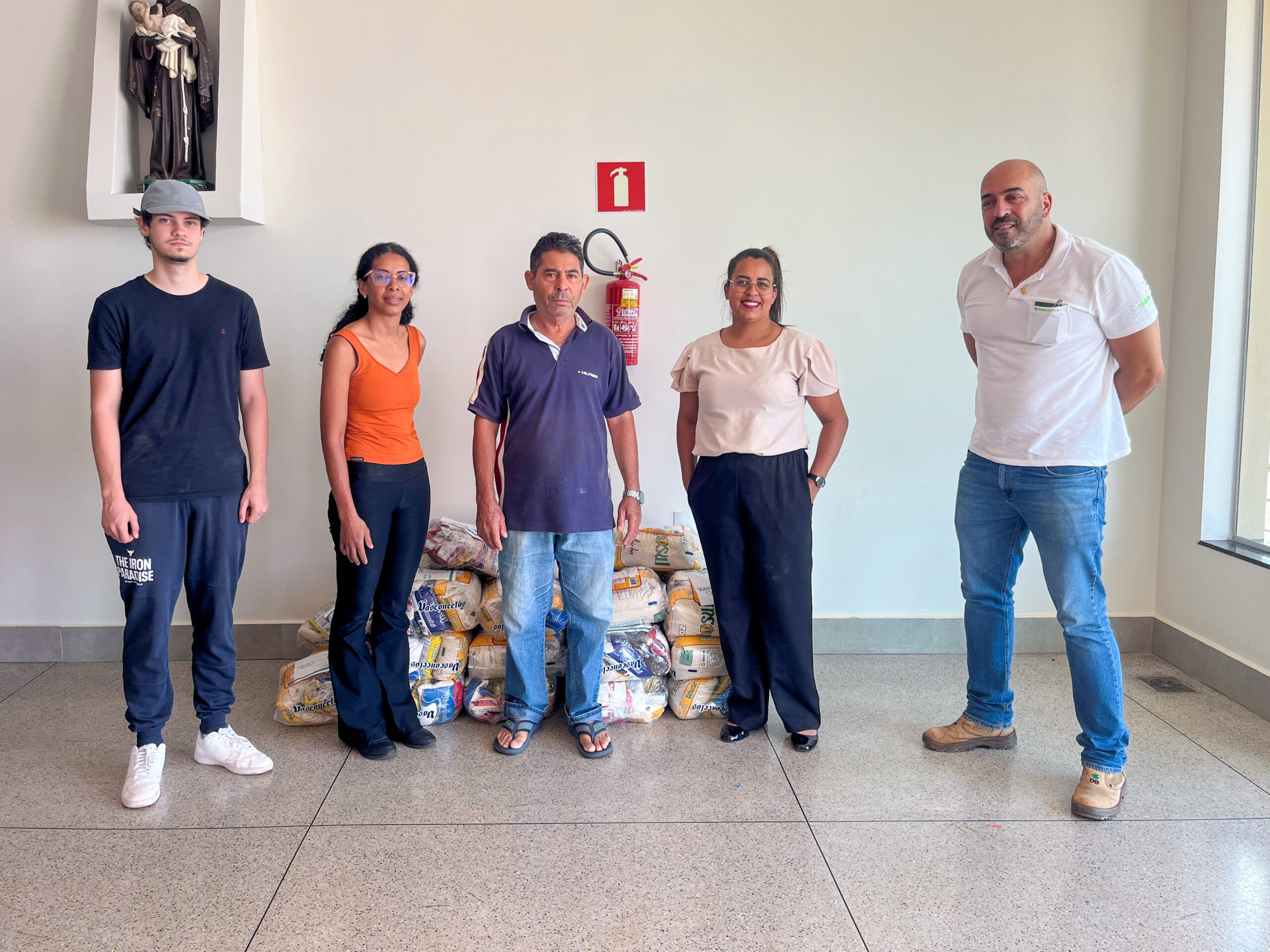 Doação de 30 cestas básicas para apoio à Paroquia São Benedito de Patos de Minas (MG) em ação social para atendimento a famílias carentes.
